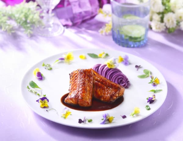 Stir sauce mix well over hot water. Drizzle over the eel. Serve with the mashed purple sweet potatoes.